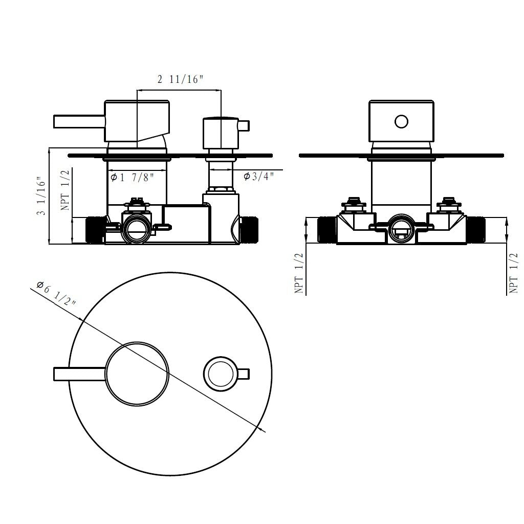 - 2-Way Pressure balanced rough-in valve with two way diverter