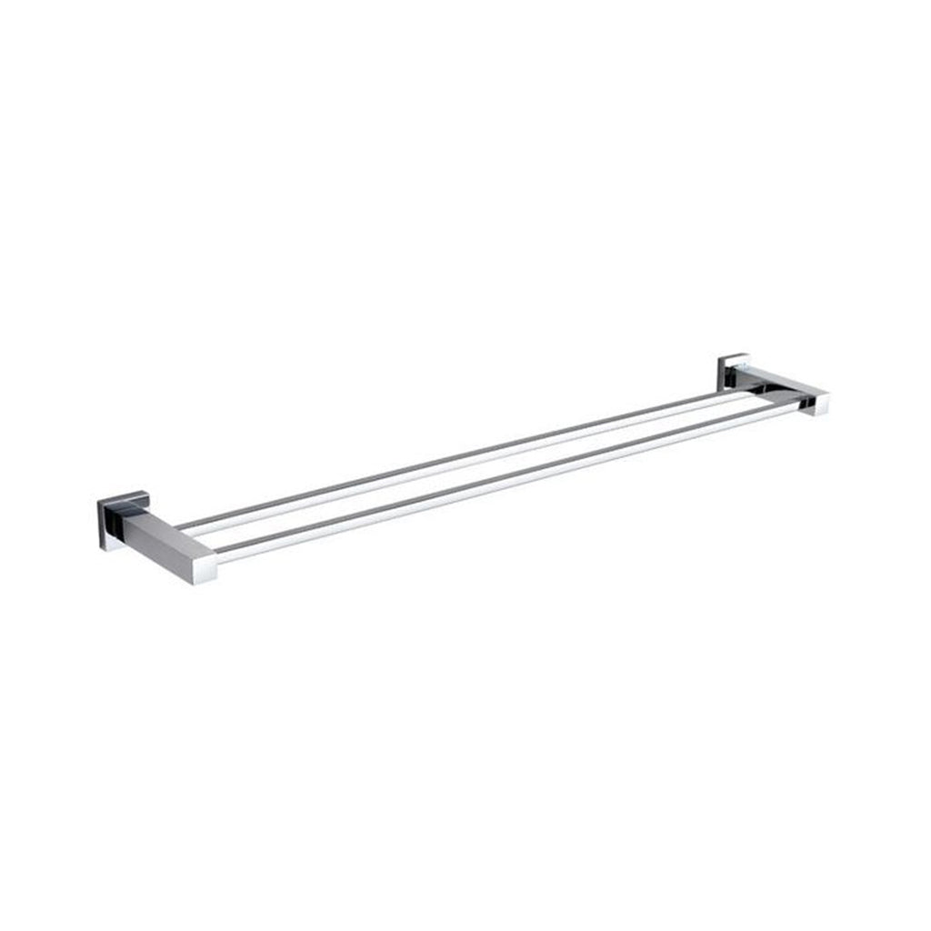 Cubic Double Towel Bar - Wall Mount - 24" Brass/Polished Chrome