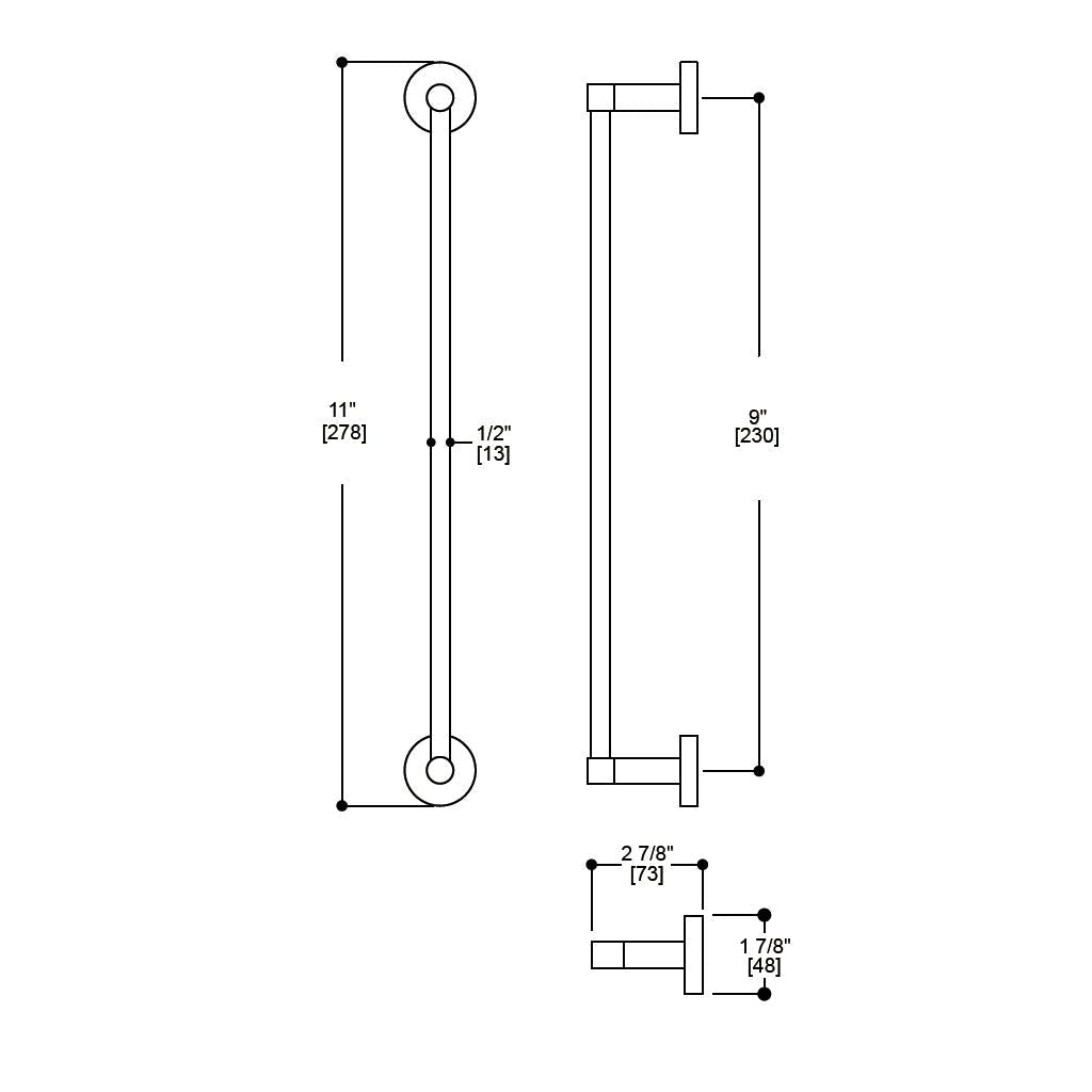 Metro Single Towel Bar - Wall Mount - 9" Brass/Brushed Nickel
