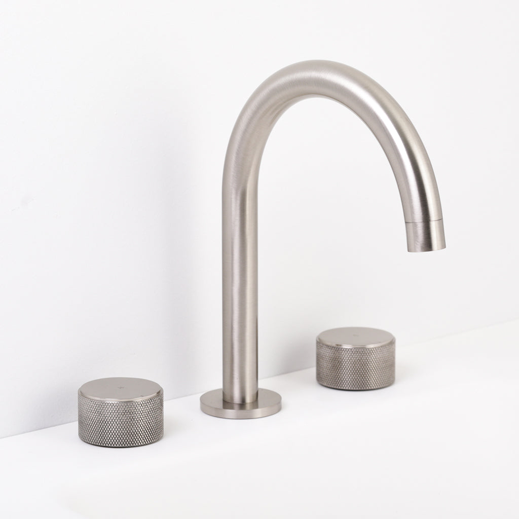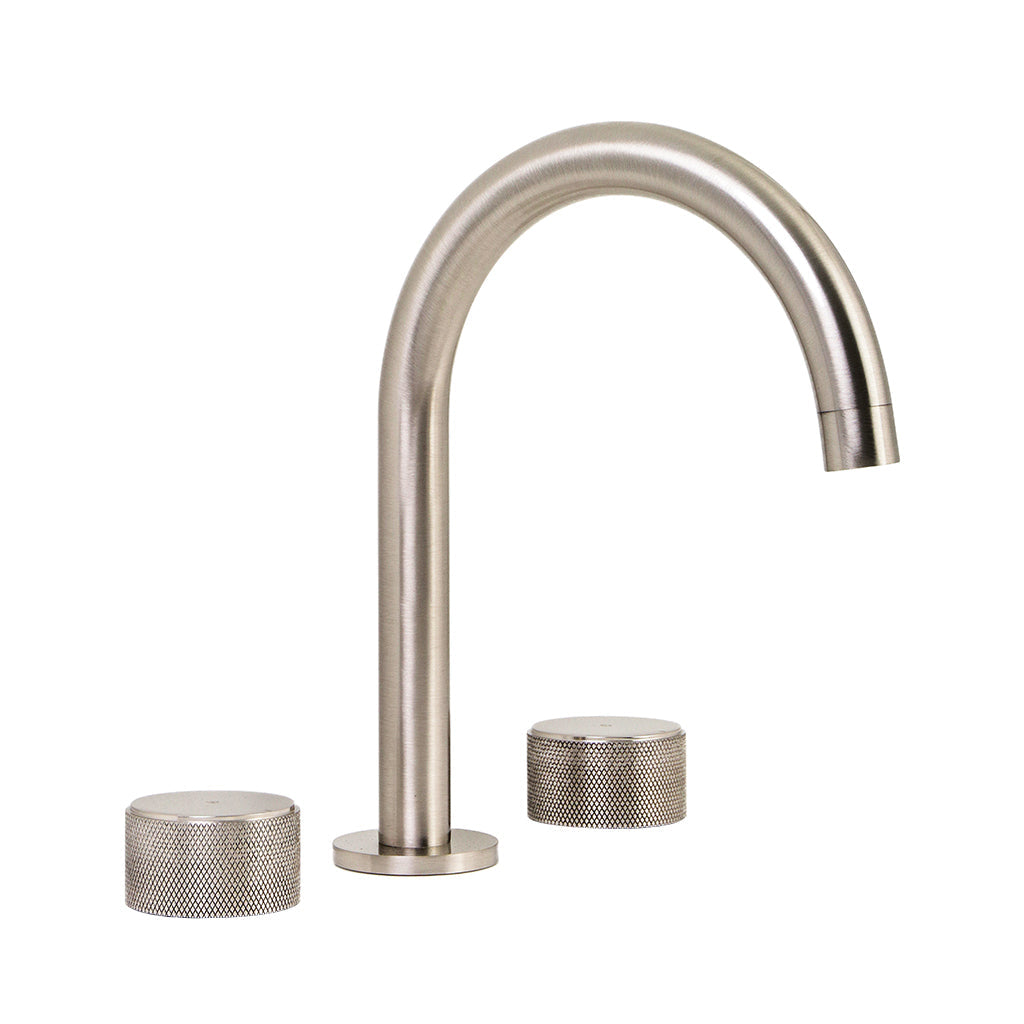 Widespread faucet round design. The Knurled collection of harmonious aesthetics that decorates the bathroom space with defined rounded lines that adapt to the urban style. A simple piece in compact form that incorporates refined finishes and knurled handles that make this work an exclusive faucet. Its innovative knurling lever design improves the functionality of continuous use. A piece of timeless as a proposal for the current bathrooms. Manufactured in brass will make your product stand the test of time like the first day.Available in different finishes.