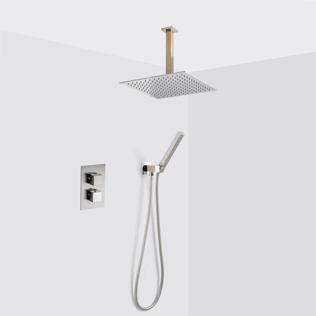 Devon 2-3 Way Shower Set With Hand Shower Set - Ceiling Mount - 12" Brass/Brushed Nickel