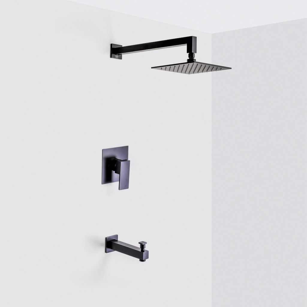 Pressure balanced 1-Way shower system of our family Devon. With this shower set you have everything you need to install your shower. It is a one-way system with outlet for shower head and outlet for tub spout wiyt diverter (The tub spout-shower head selection is made through a diverter incorporated in the tub spout). Composed of one-way pressure balanced mixer, tub spout wiyh diverter, shower arm for wall installation and shower head.