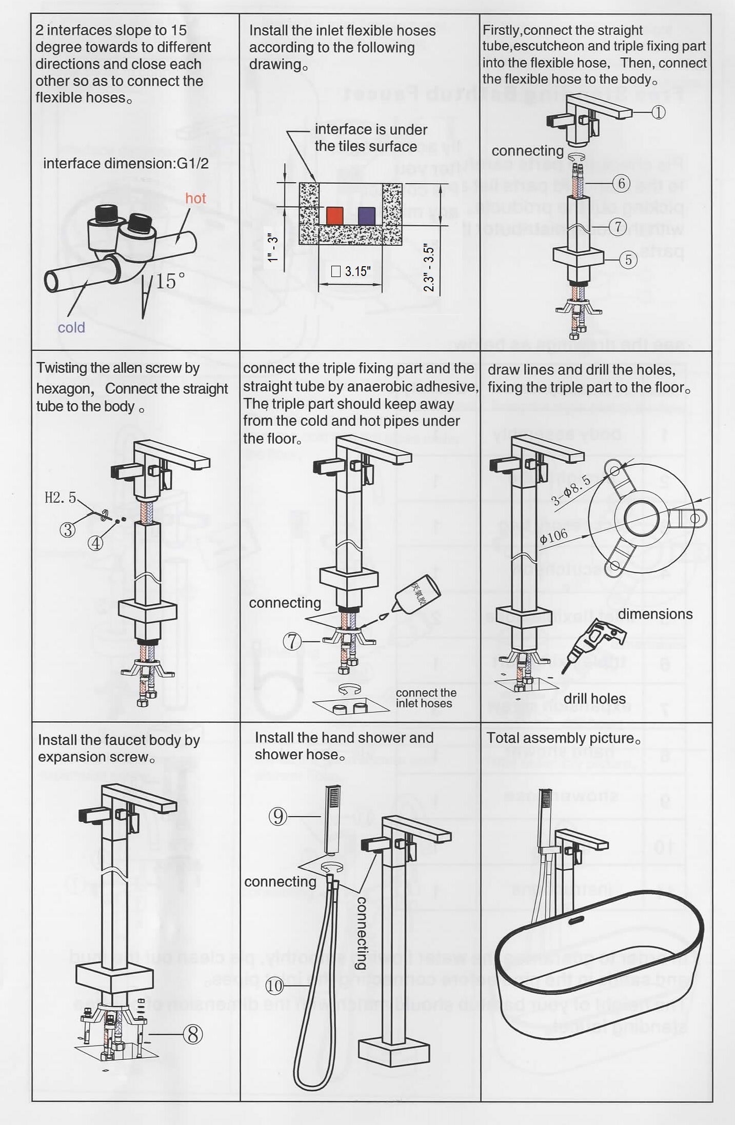 Enjoy the beauty of straight lines for a renewed appearance in the space of your bathroom. This beautiful tub filler from our Devon series can be used in any independent tub. This tap, mounted directly on the floor, will complement any modern or contemporary bathroom to achieve an elegant look in general. Constructed from solid brass to provide long-lasting style and functionality in your home. It has two water outlets, one for filling the tub and another as a hand shower. Both selectable through a diverter.The independent tap that mounts directly on the floor. Offers easy installation.Available in different finishes.